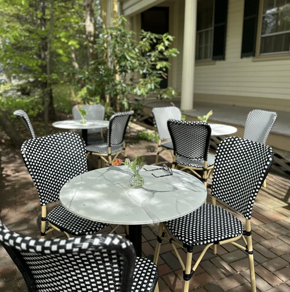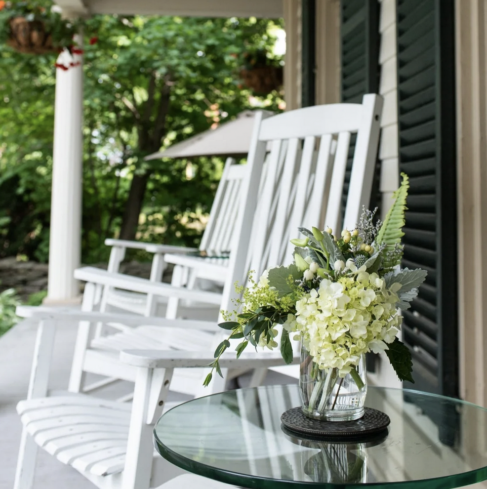 Built in the early 2000’s, the Carriage House is a peaceful retreat nestled in the trees behind the Main House. With its vaulted ceiling and unexpectedly modern glass and steel staircase, the Carriage House offers 7 guest rooms, all with private baths, televisions, wi-fi, and a common area with electric kettle, French press, ice machine, and sitting areas for reading, working, or visiting.