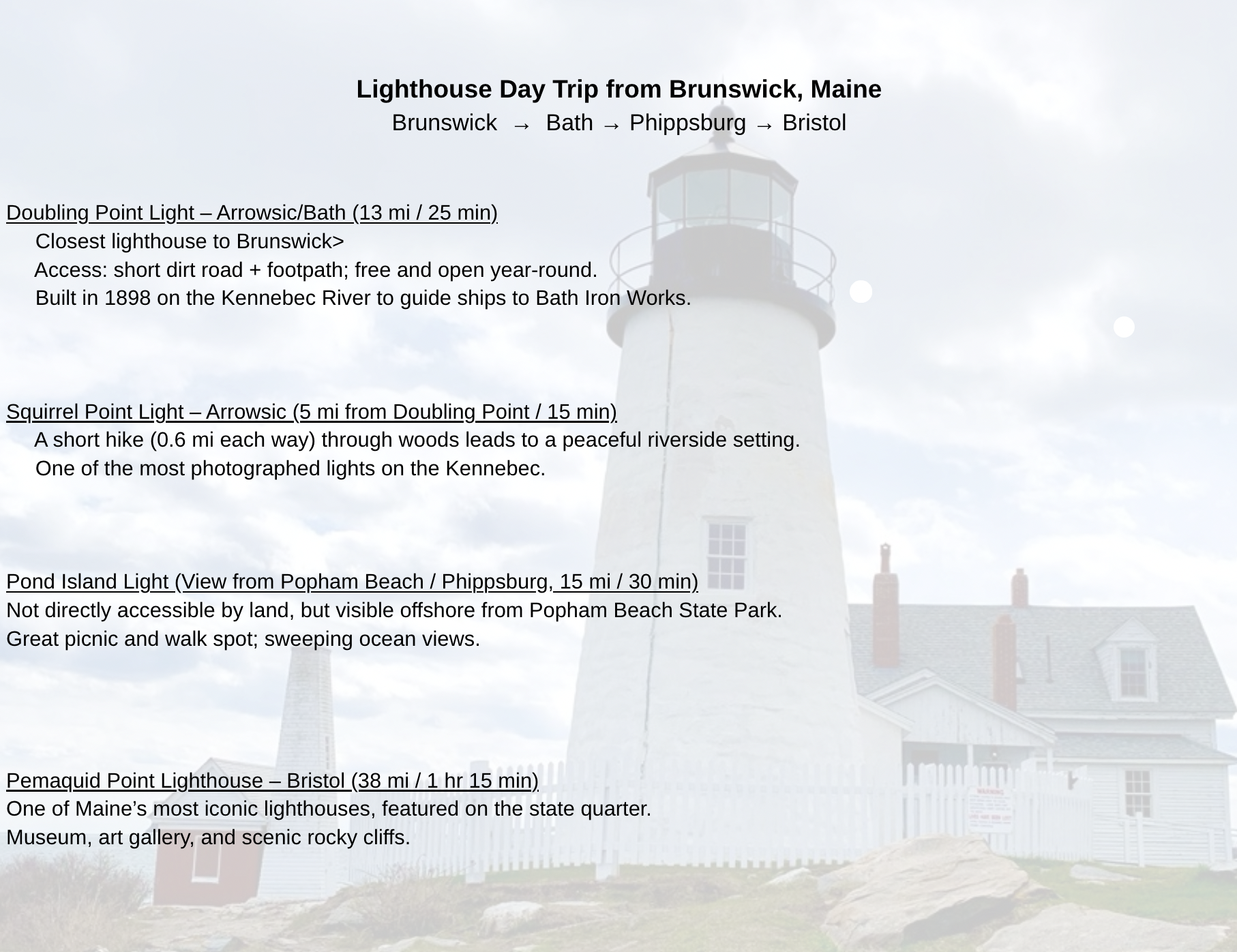 - Proximity to coastal towns like Bath, Harpswell, and Boothbay expands marketing reach without the isolation of more rural destinations.